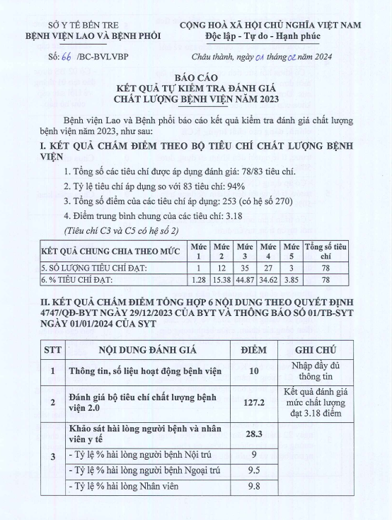 Báo Cáo Đoàn Kiểm Tra, Đánh Giá Chất Lượng Bệnh Viện Năm 2023